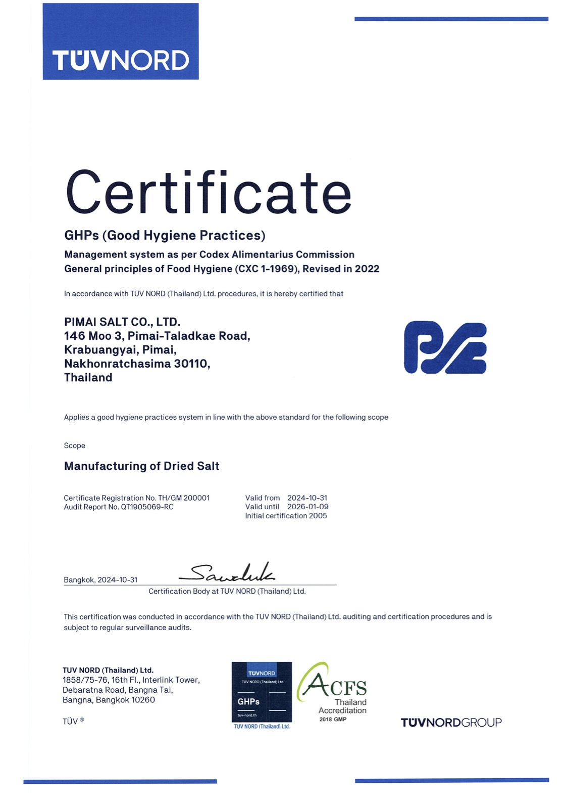 GHPs UA - Certificate Pimai Salt (ACFS)