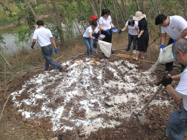 Social Responsibility - Employees of Pimai Salt Co.,Ltd (PSC) making salt licks for wild animals. Pha Kradas Forest Protection Unit, Khao Yai National Park.
