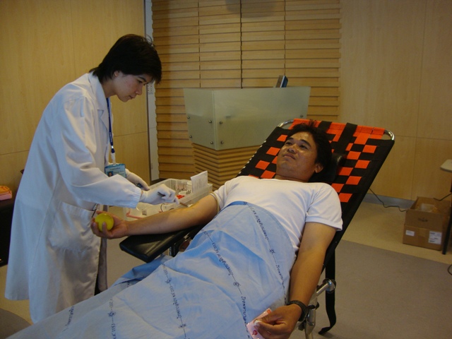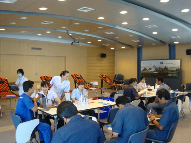 Manager and employees of Pimai Salt Factory. participated blood donation at reception room Pimai Salt Factory Nakhonratchasima for Phimai Hospital on 16 June 2011