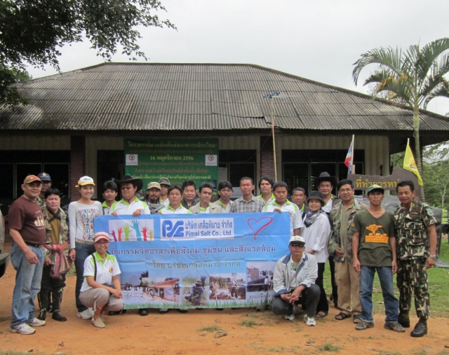 Sustainable Development - Pimai Salt Co.,Ltd. jointly donated salt 4.5 tons for support activity of provincial credit card operating, Kasikorn Bank PCL. to Building Weir, plant tree and contains the mineral to natural salt lick at Tub Lan National Park (Pha Kep Tawan)