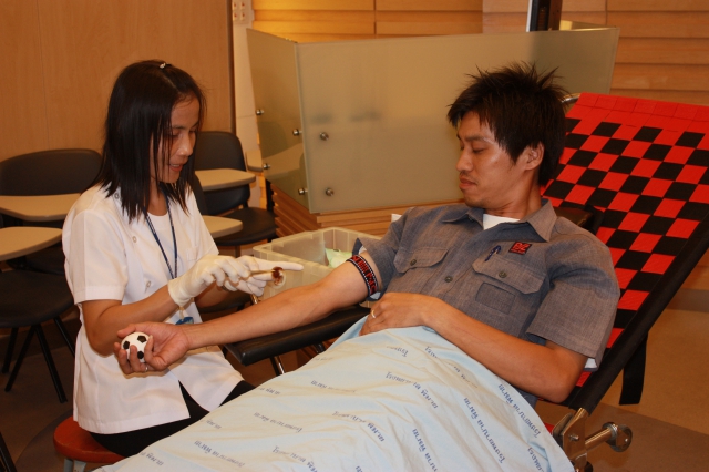 Social Responsibility - 38 employees of Pimai Salt Factory and Regular cooperates with business partner have donated blood to Phimai Hospital on 27 June 2012 at Reception Room Pimai Salt Factory Nakhonratchasima