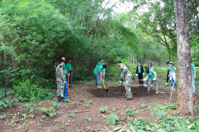 Social Responsibility - Sustainable Dev. - Employees of Pimai Salt Co.,Ltd (PSC) making salt licks for wild animals.