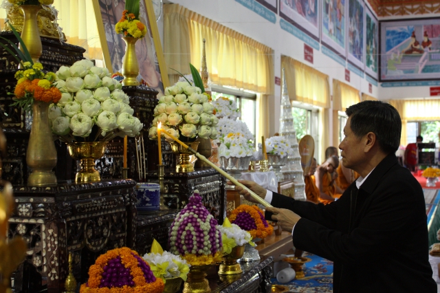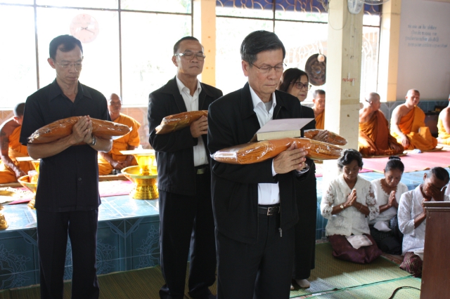 Mr. Arun Incharoensakdi Chief Operating Officer of Pimai Salt Co., Ltd. with employees and business partner jointly Kathin ceremony at Wat Sumrit Tawantok, T. Sumrit, and Wat Krabeungnoi-Chabok, T. Krabeungyai, A.Phimai, Nakhonratchasima. On October 26, 2016.