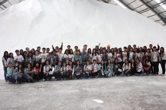 กลุ่มคณาจารย์และนักศึกษา คณะวิทยาศาสตร์และเทคโนโลยี มหาวิทยาลัยราชภัฏมหาสารคาม จำนวน 103 ท่าน เข้าเยี่ยมชมกระบวนการผลิตเกลือด้วยวิธีเหมืองละลาย และการจัดการด้านสิ่งแวดล้อม ณ โรงงานบริษัท เกลือพิมาย จำกัด เมื่อวันที่ 4 พฤศจิกายน 2557