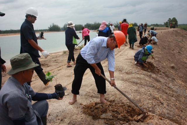 กิจกรรมเพื่อสังคม - ผู้บริหารและพนักงาน บริษัท เกลือพิมาย จำกัด ร่วมกับ นายอำเภอและผู้นำชุมชน อำเภอพิมาย ปลูกต้นไม้ จำนวน 1,000 ต้น เพื่อเพิ่มพื้นที่สีเขียวในบริเวณโรงงาน เนื่องในวันสิ่งแวดล้อมโลก