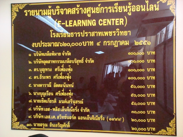 การพัฒนาที่ยั่งยืน - วันศุกร์ที่ 4 กรกฎาคม 2551 บริษัท เกลือพิมาย จำกัด โดย ดร.ธีระพร ศรีเฟื่องฟุ้ง กรรมการผู้อำนวยการ และผู้ให้การสนับสนุน บริจาคศูนย์การเรียนรู้ออนไลน์ให้แก่โรงเรียนธารปราสาทเพชรวิทยา อ.โนนสูง จ.นครราชสีมา