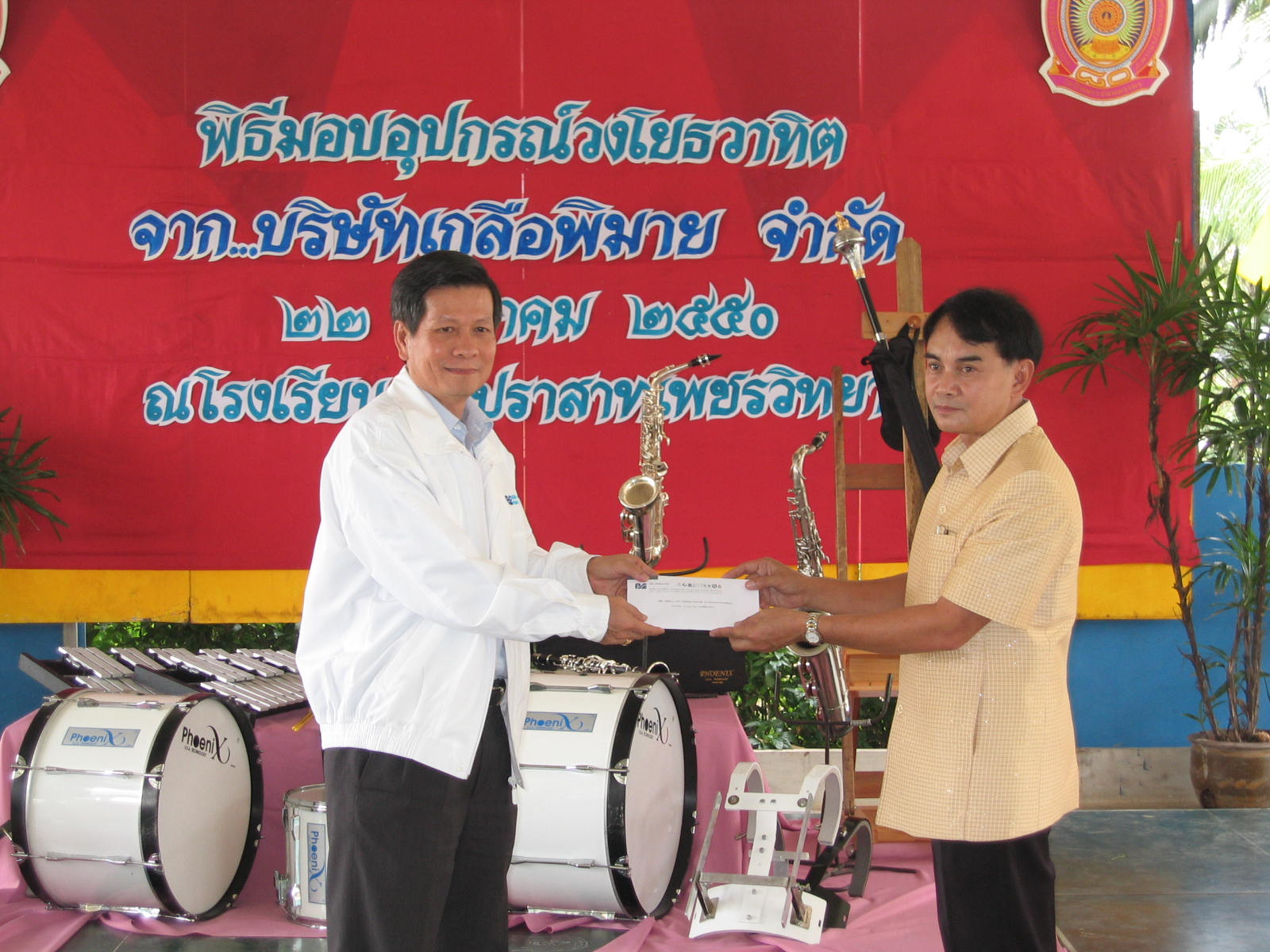 บริษัท เกลือพิมาย จำกัด บริจาคอุปกรณ์วงโยธวาธิตให้แก่โรงเรียนธารปราสาทเพชรวิทยา อำเภอโนนสูง จังหวัดนครราชสีมาในวันพุธที่ 22 สิงหาคม 2550