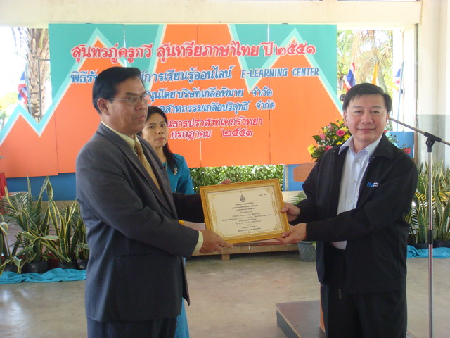 กิจกรรมเพื่อชุมชนและสังคม - วันศุกร์ที่ 4 กรกฎาคม 2551 บริษัท เกลือพิมาย จำกัด โดย ดร.ธีระพร ศรีเฟื่องฟุ้ง กรรมการผู้อำนวยการ และผู้ให้การสนับสนุน บริจาคศูนย์การเรียนรู้ออนไลน์ให้แก่โรงเรียนธารปราสาทเพชรวิทยา อ.โนนสูง จ.นครราชสีมา