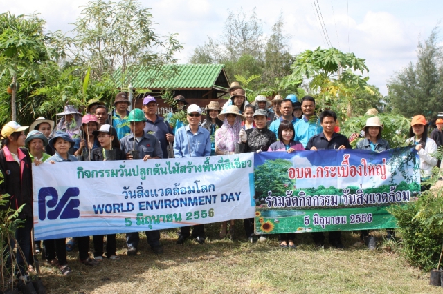 กิจกรรมเพื่อชุมชนและสังคม - ผู้จัดการและพนักงานของ บริษัท เกลือพิมาย จำกัด ร่วมกับผู้นำชุมชนท้องถิ่นของ อ. พิมายได้ปลูกต้นไม้ (500 ต้น) เพื่อเพิ่มพื้นที่สีเขียวบนพื้นดินเค็มของเกลือพิมาย เนื่องในโอกาสวันสิ่งแวดล้อมโลก