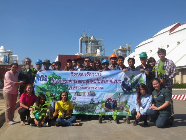 กิจกรรมเพื่อชุมชนและสังคม - ผู้จัดการและพนักงานของ บริษัท เกลือพิมาย จำกัด ได้ปลูกต้นไม้ (400 ต้น) เพื่อเพิ่มพื้นที่สีเขียวบนพื้นดินเค็มของเกลือพิมาย