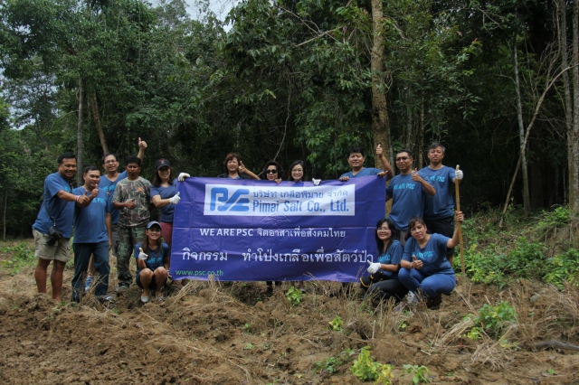 The management and staff volunteers, Pimai Salt Co., Ltd. joint project ?Rock salt to salt licks for wild animals?. With the objective to enhance minerals are essential to life and is an important food source for many animals that live in the area of Kaeng Krachan National Park, Phetchaburi province on September 19, 2013.