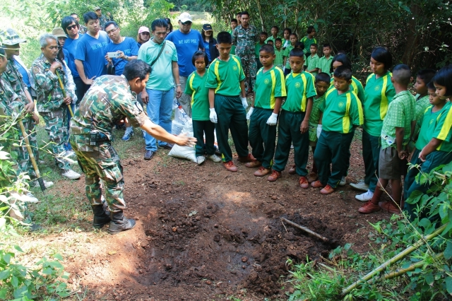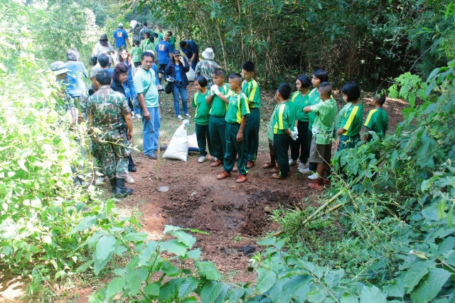 Social Responsibility - The Employees and the students confederate making salt licks for wild animals. , Pimai Salt Co., Ltd. joint project ?Rock salt to salt licks for wild animals?.