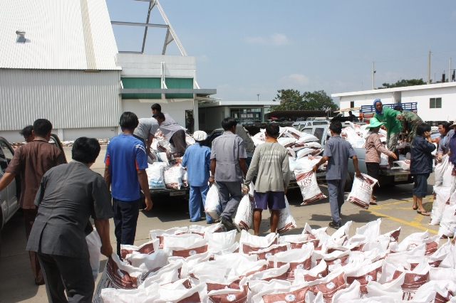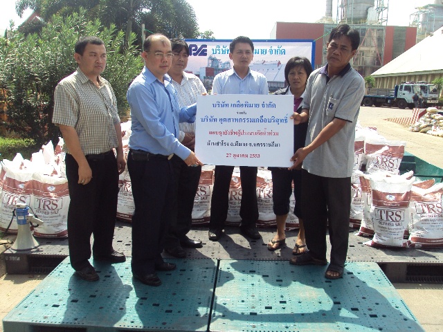 Pimai salt Co., Ltd. and Thai Refined Salt Co., Ltd. Donate relief bags to staffs and communities nearby plant area (Flood victims) 2,200 set. On October 27, 2010