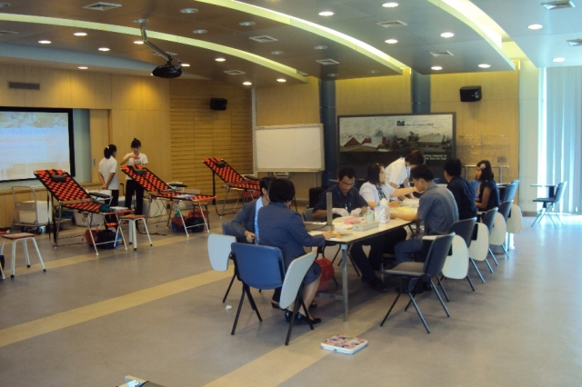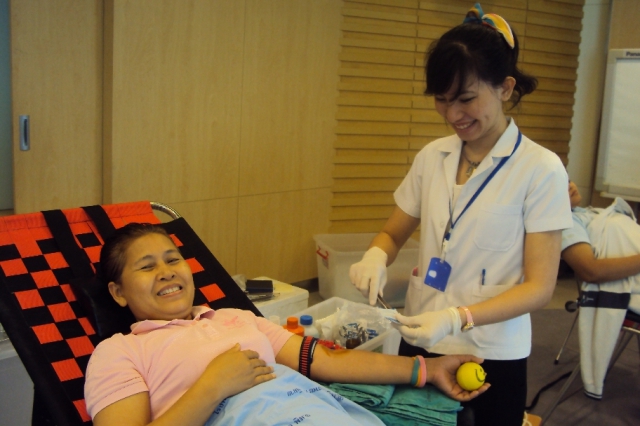 Manager and employees of Pimai Salt Factory. Participated blood donation at Reception Room Pimai Salt Factory Nakhonratchasima for Phimai Hospital on March 21, 2012