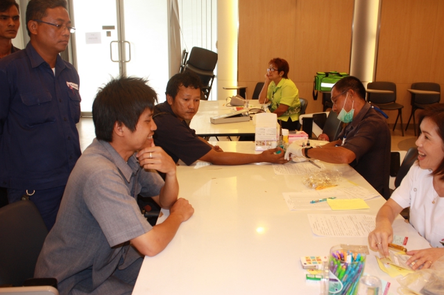 Social Responsibility - 38 employees of Pimai Salt Factory and Regular cooperates with business partner have donated blood to Phimai Hospital on 27 June 2012 at Reception Room Pimai Salt Factory Nakhonratchasima