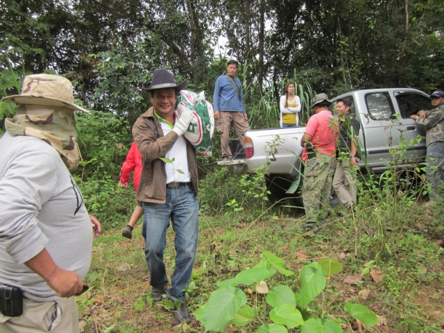 Social Responsibility - Pimai Salt Co.,Ltd. jointly donated salt 4.5 tons for support activity of provincial credit card operating, Kasikorn Bank PCL. to Building Weir, plant tree and contains the mineral to natural salt lick at Tub Lan National Park (Pha Kep Tawan)