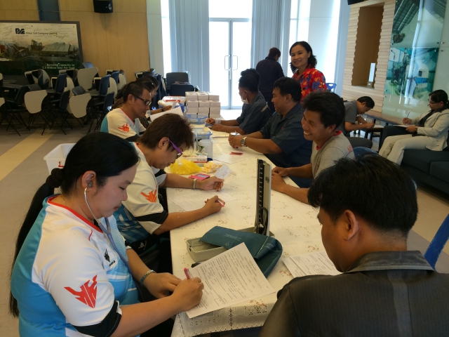 Social Responsibility - The employees of Pimai Salt Co.,Ltd. and business partner (40 persons) have joined to blood donated at reception room of Pimai Salt Co.,Ltd. For given Phimai Hospital, Nakhonratchasima, total 17,400 CC. on April 9, 2015.