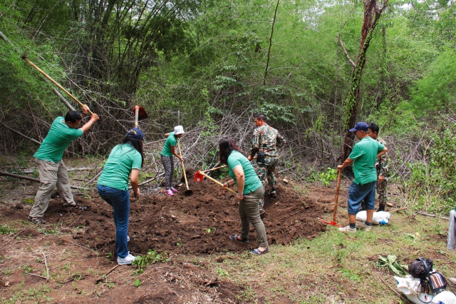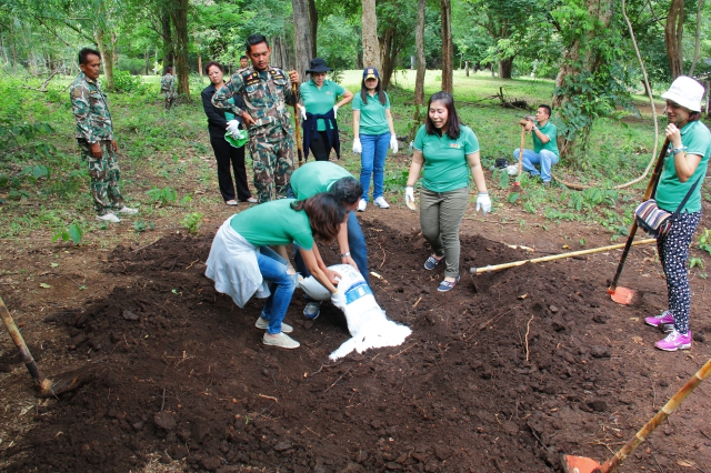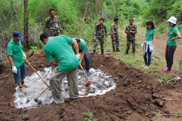 Social Responsibility - Sustainable Dev. - Employees of Pimai Salt Co.,Ltd (PSC) making salt licks for wild animals.