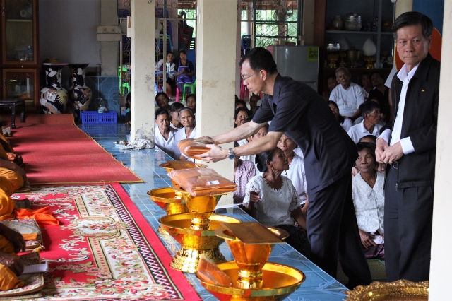 Mr. Arun Incharoensakdi Chief Operating Officer of Pimai Salt Co., Ltd. with employees and business partner jointly Kathin ceremony at Wat Sumrit Tawantok, T. Sumrit, and Wat Krabeungnoi-Chabok, T. Krabeungyai, A.Phimai, Nakhonratchasima. On October 26, 2016.