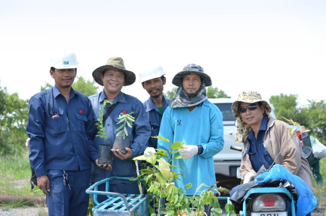 กิจกรรมด้านสิ่งแวดล้อม - ผู้จัดการและพนักงานของ บริษัท เกลือพิมาย จำกัด ร่วมกับผู้นำชุมชนท้องถิ่นของ อ. พิมายได้ปลูกต้นไม้ (500 ต้น) เพื่อเพิ่มพื้นที่สีเขียวบนพื้นดินเค็มของเกลือพิมาย เนื่องในโอกาสวันสิ่งแวดล้อมโลก 5 มิถุนายน 2015