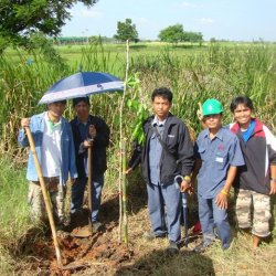 กิจกรรมเพื่อสังคม - ผู้บริหารและพนักงาน บริษัท เกลือพิมาย จำกัด ร่วมกับผู้นำชุมชน อำเภอพิมาย ปลูกต้นไม้บริเวณสองข้างทาง ถนนตลาดแค-พิมาย