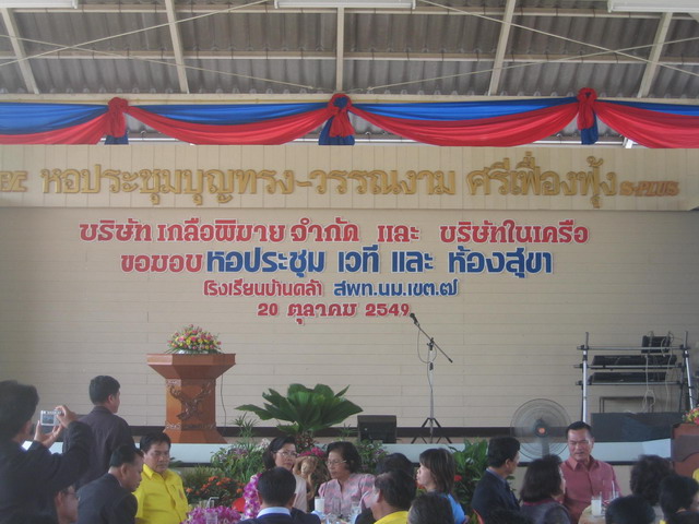 กิจกรรมเพื่อชุมชนและสังคม - วันศุกร์ที่ 20 ตุลาคม 2549 มอบหอประชุม เวที และห้องสุขา ให้โรงเรียนบ้านคล้า