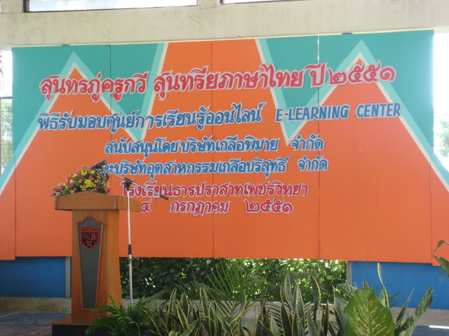 กิจกรรมเพื่อชุมชนและสังคม - วันศุกร์ที่ 4 กรกฎาคม 2551 บริษัท เกลือพิมาย จำกัด โดย ดร.ธีระพร ศรีเฟื่องฟุ้ง กรรมการผู้อำนวยการ และผู้ให้การสนับสนุน บริจาคศูนย์การเรียนรู้ออนไลน์ให้แก่โรงเรียนธารปราสาทเพชรวิทยา อ.โนนสูง จ.นครราชสีมา