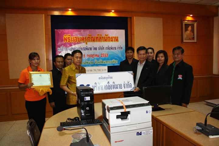 กิจกรรมเพื่อชุมชนและสังคม - นายอรุณ อินเจริญศักดิ์ ผู้อำนวยการโรงงาน บริษัท เกลือพิมาย จำกัด มอบอุปกรณ์สำนักงาน (เครื่องปรับอากาศ เครื่องถ่ายเอกสาร และเครื่องคอมพิวเตอร์) ให้แก่นายอำเภอพิมายในวันที่ 8 กรกฏาคม 2553